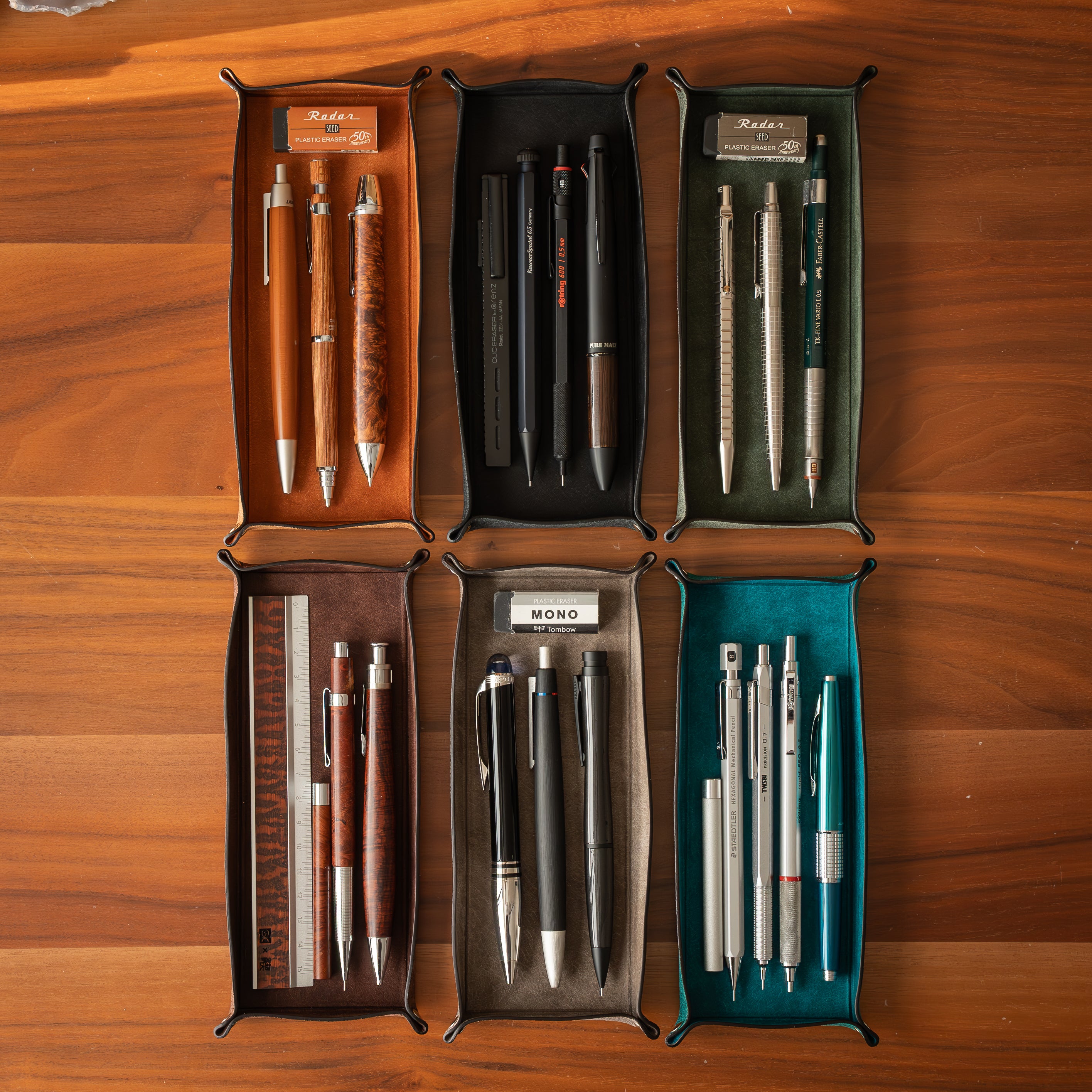 消しゴムや定規なども一緒に美しく収納でき、デスクに高級感をプラス。